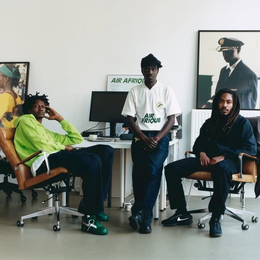 Air Afrique is a Parisian multidisciplinary creative collective founded in 2021 by Lamine Diaoune, Ahmadou-Bamba Thiam, Jeremy Konko and Djiby Kebe. It draws inspiration from the eponymous Pan-African airline, which ran from 1961 to 2002, and its heritage of cultural patronage, spanning cinema production, music, and magazine publishing.