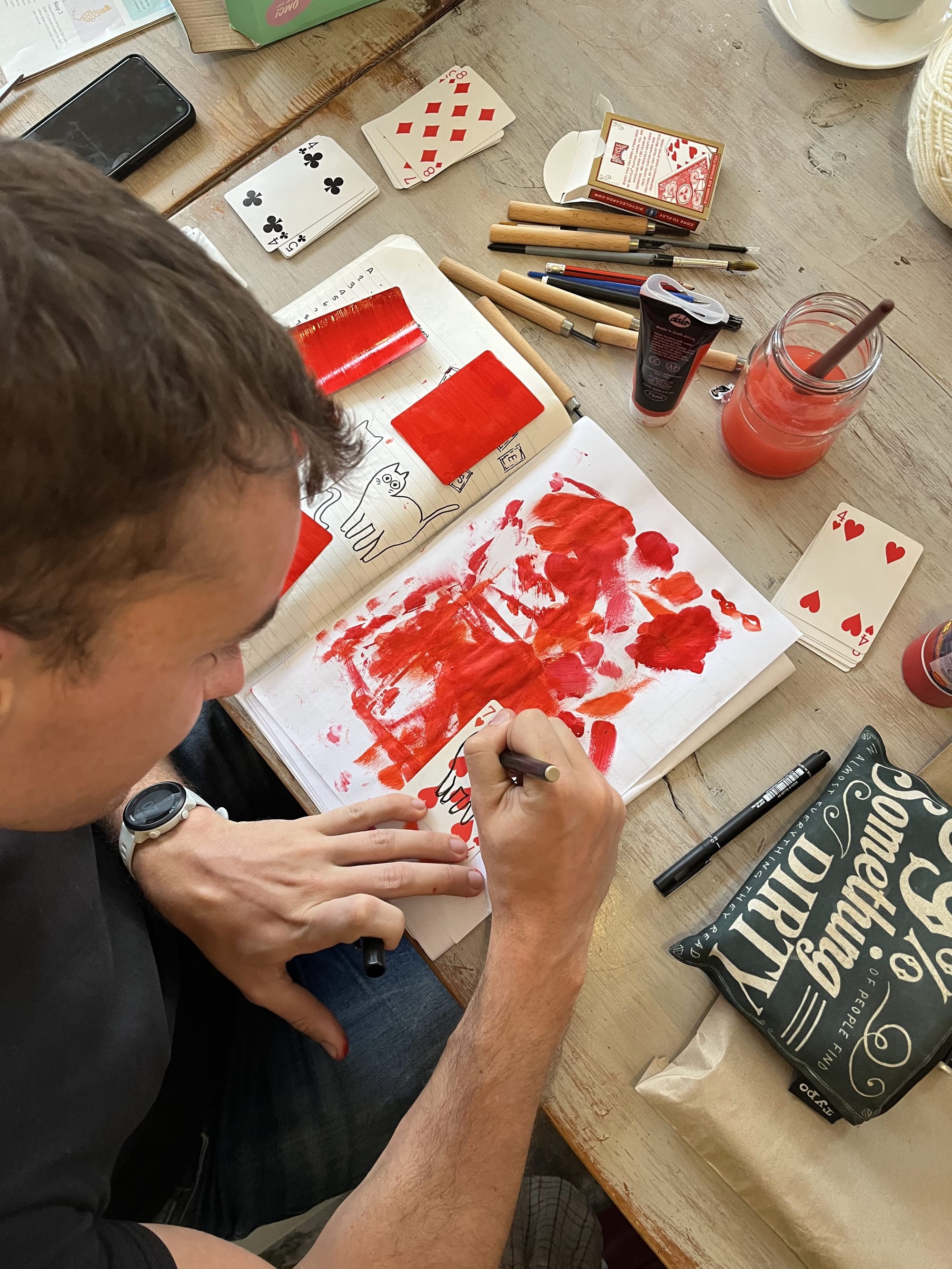 I try to play a very active role during the evening. If someone comes alone, I make sure they feel included. It’s always a mix; some people come with friends, some meet friends there. But if someone arrives by themselves, I’ll chat with them, ask what they’re working on, and sit with them for a bit until someone else joins.