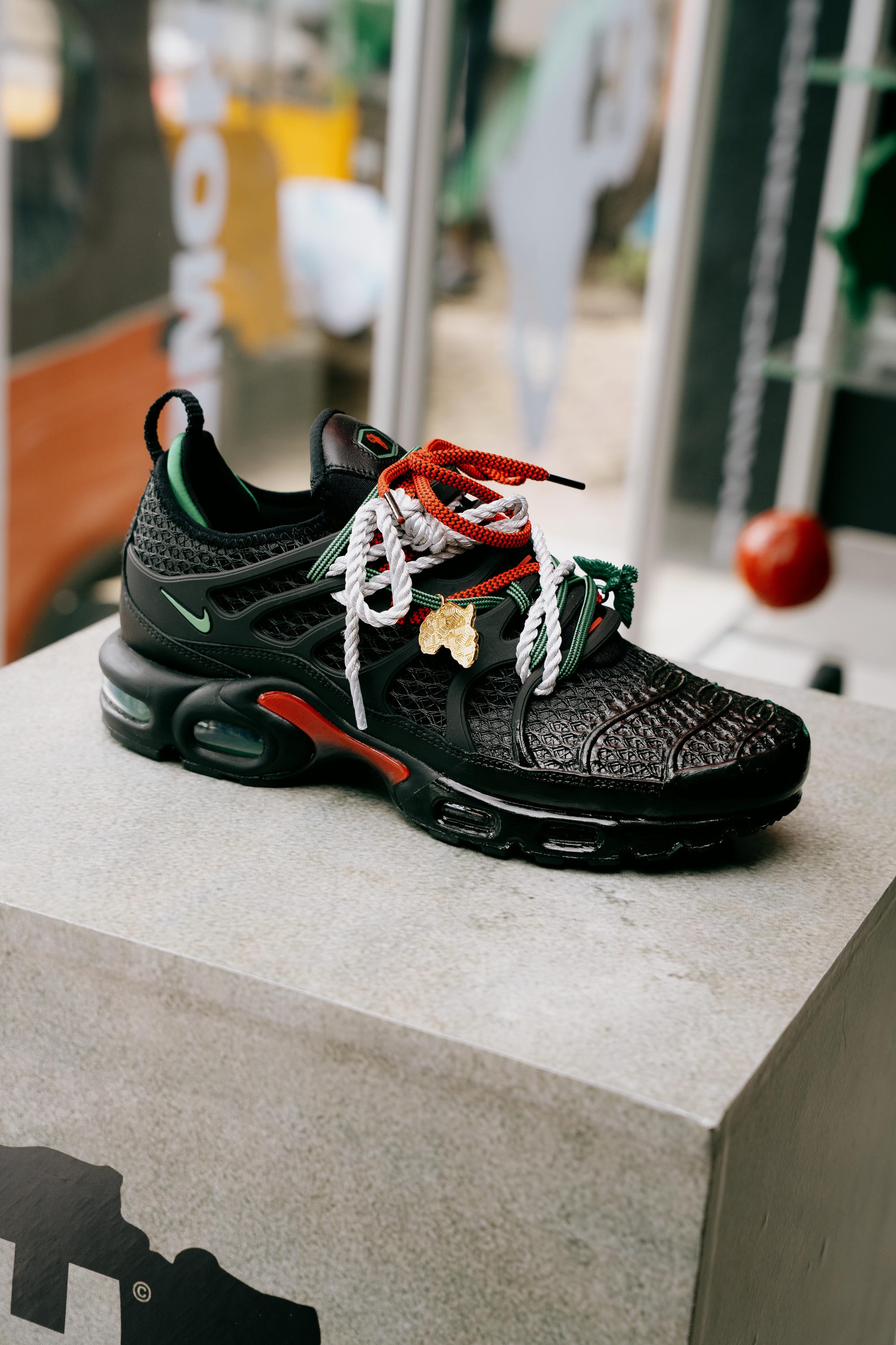 The headline of the edition, though, was the HOMECOMING™ x Nike Air Max Plus, designed by HOMECOMING founder Grace Ladoja MBE, making history as the first African woman to design a signature Nike shoe. The launch on Friday, April 3rd, marked a decade-long relationship between Ladoja and Nike, but the shoe itself goes further back than that. The detail work is deliberate in a way that matters: the Nigerian map rendered in green and gold, cowrie shell charms drawn from West African spiritual and material culture, two colourways — Pan-African and African Sunrise — that carry the weight of their names. The campaign title, No Place Like HOMECOMING, points to something larger than a product. It names the community of artists and creatives that the platform has spent nine years building, the people for whom those symbols are not aesthetic choices but a shared language.