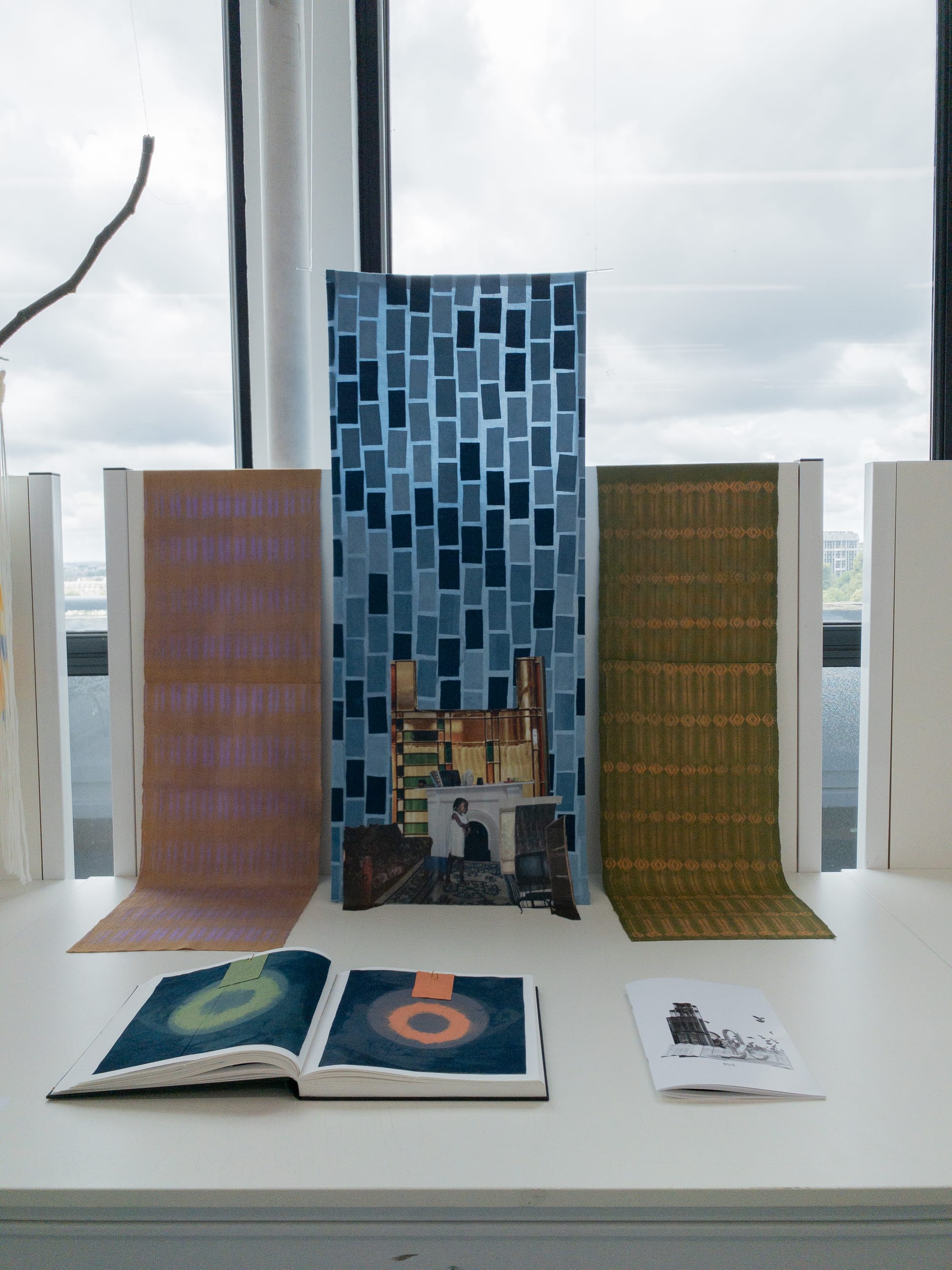 She completed her BA in Woven Textiles at Falmouth University and her MA at the Royal College of Art, where her practice deepened into something more personal. Her MA project, Tsuntsuwa Che — She is a Bird, brought together indigo dyeing, woven shibori, film photography, and photo collage to build a kind of portable home: a wall hanging assembled from the many places she has lived, designed to travel with her.
