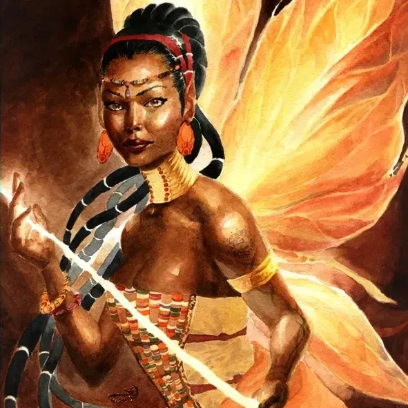 Mamba Muntu lives in Central Africa's great rivers. She’s similar to Mami Wata, but is distinct to the Congo region. She's also been described as a mermaid, crocodile, or snake. The name means "Mother of People."